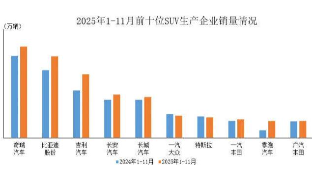 中汽协:1-11月销量排名前十SUV生产企业共销售958.3万辆