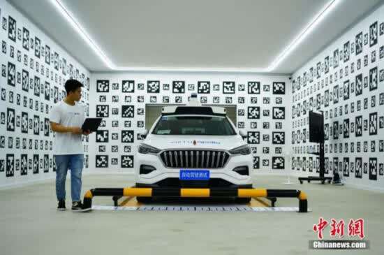 7月10日,在河北省沧州市云图科技自动驾驶标定与维护中心,工作人员对L4级自动驾驶车辆进行调试。 中新社记者 翟羽佳 摄