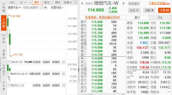 理想汽车共发行1亿股,每股定价118港元,开盘不久破发。12日收报117港元,下跌0.85%,总市值2400.66亿港元。上市第二天(13日),延续前一日跌势,收跌2.05%,报114.6港元。