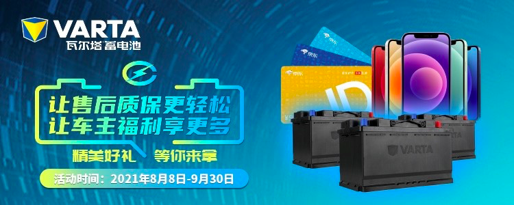 瓦尔塔蓄电池,百年品牌,源自德国。全球每三位车主,就有一位使用的是由瓦尔塔母公司柯锐世生产的蓄电池。为了更好的回馈广大车主,2021年8月8日起至9月30日,购买瓦尔塔蓄电池产品,并成功注册电子质保,即可通过以下路径(关注【VARTA瓦尔塔蓄电池】官方微信 -> 点击菜单栏->尊贵服务->我的权益->点击活动封面)进入H5活动页面,领取价值不等的京东礼品卡券,参与互动分享还有机会赢取IPHONE12 64G,限量发布,先到先得!此外,还可领取免费道路救援服务。