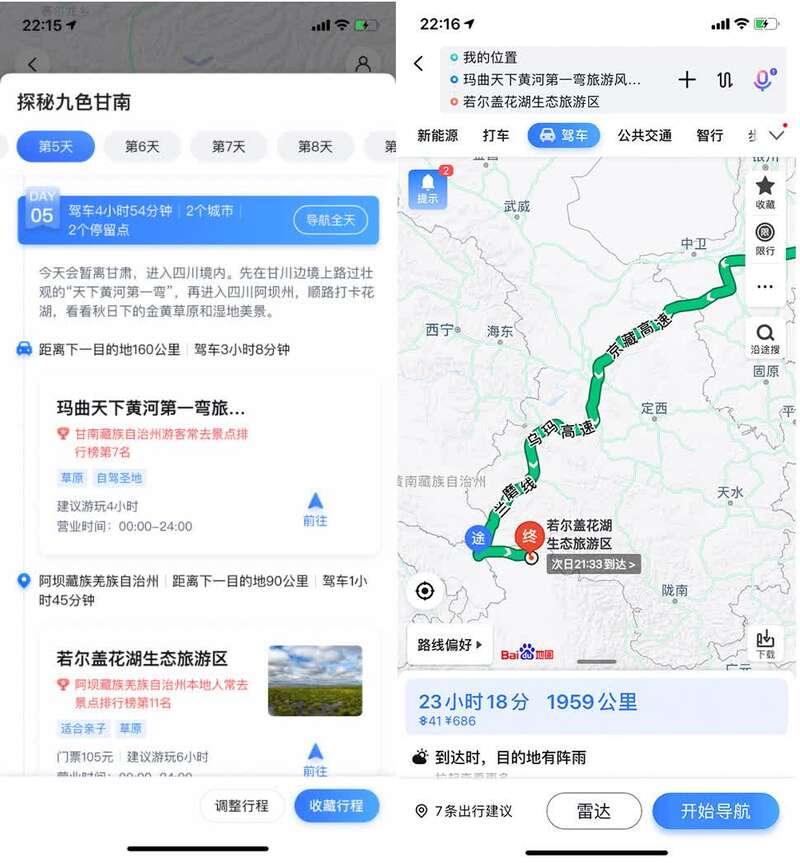 十一黄金周的到来,也让自驾游迎来新一轮热潮。为保障十一出行,百度地图与马蜂窝旅游达成深度合作,联合推出十一“必驾榜单”。推荐的每个线路中都有里程、建议出行天数、适合出行月份等贴心提示。以“探秘九色甘南”路线为例,路线全长1525公里,建议游玩时间为9天,非常适合9-10月前往;从兰州出发,这条线路承载了我们印象中“辽阔”的大西北印象。有了这份榜单,大家再也不怕在自驾游内容爆炸的时代看花眼啦。