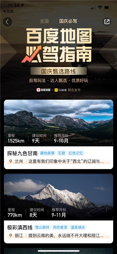 (百度地图联合马蜂窝推出十一必驾指南)