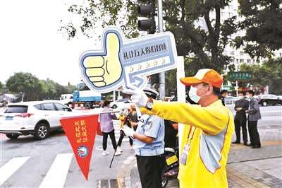 由交警、交通协管员、文明引导员、网约配送员以及马家堡街道机关党员干部和社区志愿者组成的“礼让斑马线”宣传小分队,近日在华联商厦东北侧的十字路口向来往行人、车主发起“礼让斑马线”的倡议。宣传小分队的成员挥动着写有“礼让行人你们好棒”“为礼让司机点赞”的标语牌子,推行礼让手势语,为文明司机点赞。