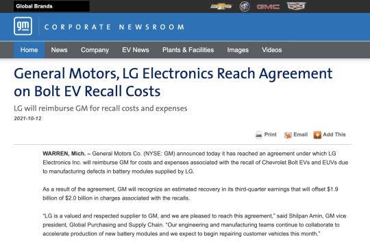 LG史上最高赔付:19亿美元,电池缺陷致通用电动车自燃