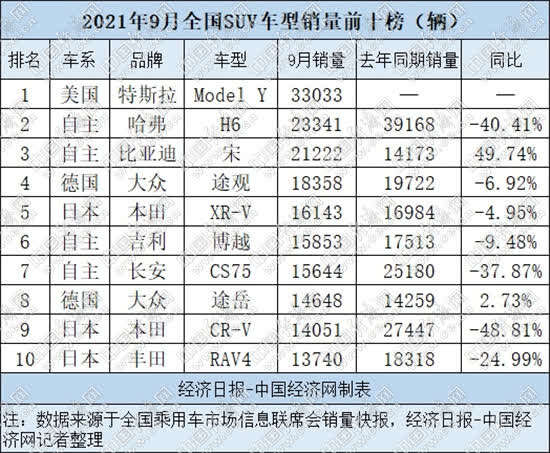 9月SUV销量"五连降" 新能源"新贵"涌现榜单
