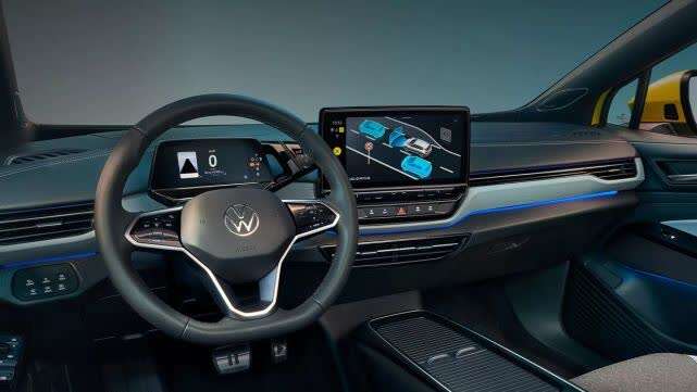 如果说外观还保留有一些大众化特征,那么上汽大众ID.4 X的内饰除了方向盘上的大众Logo,与此前的风格截然不同。单独竖立的悬浮式数字组合仪表尺寸更小,同时棱角分明的造型也显得极为时尚年轻;全新配备的HUD增强现实抬头显示系统,强化驾驶便捷性的同时,突出全车科技效果;中控悬浮式的12英寸悬浮式大屏,内置全新智慧车联系统4.0及IQDrive自动驾驶辅助系统,今年年内还有望增加OTA升级,通过在线升级实现体验改进和功能增加;中控上的车机按键采用触控按键设计,贴合现在触控屏流行的大环境背景等等。除此之外,上汽大众ID.4 X车型还全系配备IDLight光语系统,通过互通可以智能开启不同的光效,令驾驶氛围更有未来格调。