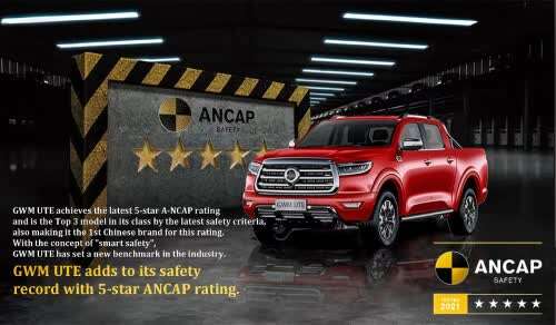 长城炮成为澳洲ANCAP新标准下首个五星安全评级的中国品牌