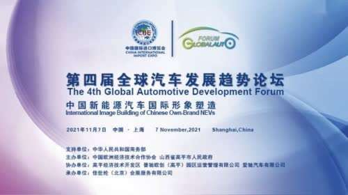 第四届中国国际进口博览会于11月5日在上海开幕。作为历届进博会的重要板块,“全球汽车产业发展趋势论坛”也于11月7日如期举行。论坛由中华人民共和国商务部、中国国际进口博览局支持,中国欧洲经济技术合作协会、山西省高平市人民政府主办,高平经济技术开发区、晋驰欧创(高平)园区运营管理有限公司、爱驰汽车有限公司承办,中国欧洲经济技术合作协会副会长代军杨主持。