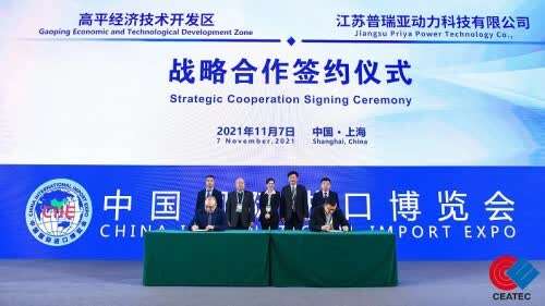 同时,协会协助爱驰汽车与丹麦蓝界科技达成合作,将甲醇制氢重整燃料电池动力系统制造基地落地山西高平,并充分发挥协会平台作用,与高平市人民政府共建共管“中欧产业园区”,以实际行动践行了总书记在本届进博会开幕式主旨演讲中指出的,引导更多外资投向先进制造业、现代服务业、高新技术、节能环保等领域,投向中国中西部和东北地区。此次,高平经济技术开发区管委会主任郑威剑就在论坛上为大家介绍了高平打造新能源汽车零部件产业集群的过程,并邀请更多企业到高平共建中欧产业园。
