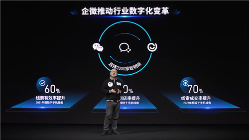 张序安还透露,为更好地推动汽车流通领域的数字化升级,易车在今年还进行了用企业微信串联易车产品和服务、腾讯生态以及汽车厂商/经销商自有CRM系统,助力经销商提高营销和运营效率的尝试。目前易车已为2000家经销商开通了服务,并取得了显著的效果。今年相较于手机线索,来自企微的线索有效率提升60%、线索到店率提升50%、线索成交率提升70%。