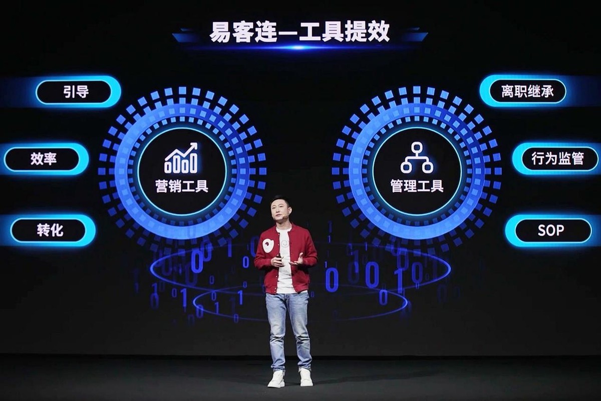 在打通腾讯体系建立汽车垂直生态下,易车在易车系+腾讯生态+外部平台进行全域的投放和获客。易车认为,在数字化、智能化的营销场景中,微信是最好的连接工具,而企微具有与微信一致的沟通体验,能够全面连接微信。易车据此推出新的产品——易客连。它是易车在“以人为中心”的理念下,基于企业微信打造的全域、全链路、数字化、智能化连接解决方案。其用企微串联营销的整个链条,借助企业微信的连接能力,帮助经销商引流获客,管理微信生态触达的全部客户,进行线上培育推进营销转化。