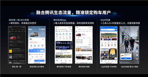 在这个汽车垂直生态中,依托过去20余年积累的精准人群标签、数据和垂直算法,易车的车型词、精品汽车内容、原创汽车视频、车主服务广泛出现在包括微信搜一搜、微信宫格、视频号、腾讯新闻、QQ浏览器、腾讯看点等腾讯与车相关的资讯和服务场景中,形成对腾讯高频海量用户池的广域触达,挖掘泛汽车兴趣用户,在决策链条的前端引导用户的汽车兴趣。过去12个月,易车在腾讯生态内触达3亿泛汽车用户。