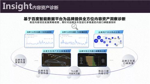 基于百度智能数据平台,品牌方可全方位洞察诊断自身的内容资产,针对品牌及车型进行多维度的内容口碑剖析。利用数据验证内容价值,不但让传统的品牌传播“唯声量论”有了科学的内容判断依据,还能为品牌方提供精准的用户画像和竞品洞察。