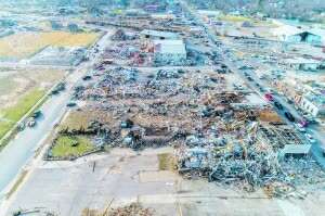 “看起来像被炸弹炸过。”肯塔基州梅菲尔德镇是此次龙卷风的重灾区,当地31岁居民亚历克斯·古德曼这样形容受灾现场。
