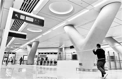 昨天,在14号线丽泽商务区站,北京青年报记者看到,工作人员正在进行收尾和保洁工作,目前这座宽敞明亮的地铁站已经完成了设备设施调试,静待开通。作为一座新站,丽泽商务区站可谓特色鲜明,乘客在站厅层可透过大面积透明玻璃看到一列列地铁列车通过。未来将实现五线换乘,因此地铁站预留了充足的空间,乘客可根据导向标识快速找到线路。