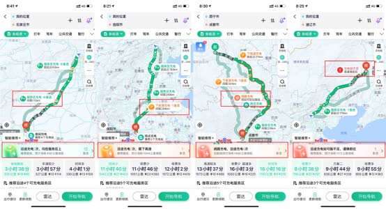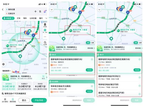 值得一提的是,依托全国98%线下充电桩的覆盖优势,除了给用户推荐沿途最优充电站外,还会推荐多个位置相近的备选站,以及它们的具体位置、距离建议续能地点多远、充电桩空闲情况、充电费用、充电功率、最近使用情况等丰富信息,给新能源用户出行增加安全感。