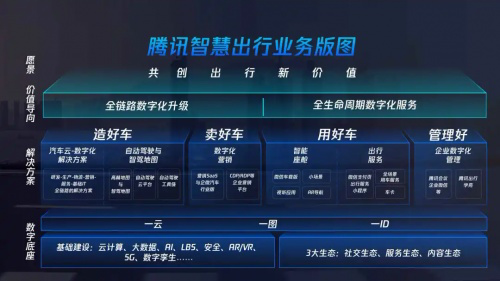 腾讯以云和图为技术基础,以微信为核心构建从手机、智能汽车、交通的联接体系,推动腾讯生态从手机端向汽车端扩展。