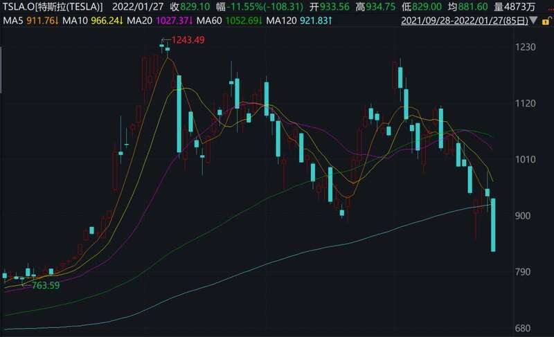 在月初发布强劲交付数据后,特斯拉股价曾在月初一度飙升至1204美元,但随后就跟随科技股大军一起开启了“跌跌不休”的模式,截至28日收盘特斯拉收报829.1美元,粗略计算,已经自月初高点下跌超31%,市值已经蒸发了3765亿美元(约合人民币2.4万亿元)。可以比较的是,纳指同期跌幅为15%。