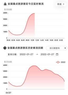 春节假期期间,各类景点也是公众出行的目的地之一。在百度地图交通出行大数据平台的中国重点旅游景区拥堵监测板块,用户可查看周边路网拥堵指数和客流指数排行前10的热门景区以及全国重点旅游景区实时、历史客流量,更能通过详情页查看任一旅游景区的拥堵详情,合理选择旅行目的地,规划游玩计划。