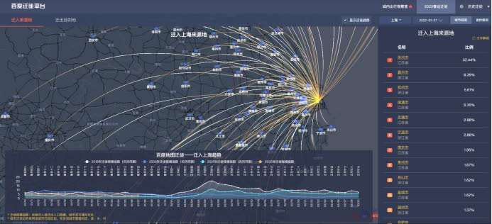 面对2022春运大考,除了此次全新上线的交通出行大数据平台之外,百度地图迁徙平台也是百度地图交通出行大数据服务的重要组成。通过该平台,用户可实时查看每日人口跨城迁徙情况,并按照国、省、市分级查询详细的人口迁入、迁出流向。此外,为了更好地服务春运出行,百度地图迁徙平台也于近期升级上线了“城内出行观察室”,可监测城市内部的出行态势,帮助用户合理规划城内出行,助力城市精细化管理和疫情防控。
