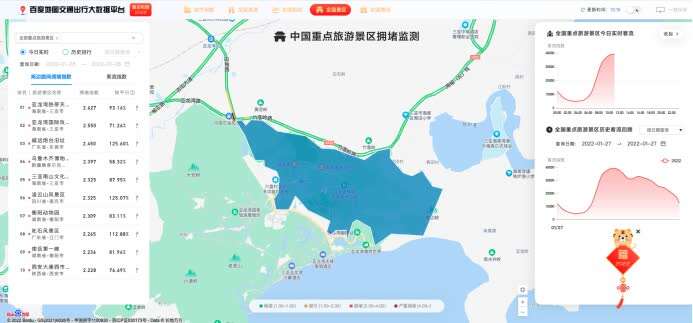 (百度地图交通出行大数据平台-中国重点旅游景区拥堵监测页)