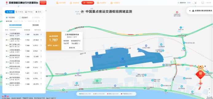 (百度地图交通出行大数据平台-重点客运枢纽监测页面)