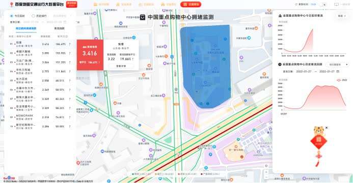 (百度地图交通出行大数据平台-中国重点购物中心拥堵监测页)