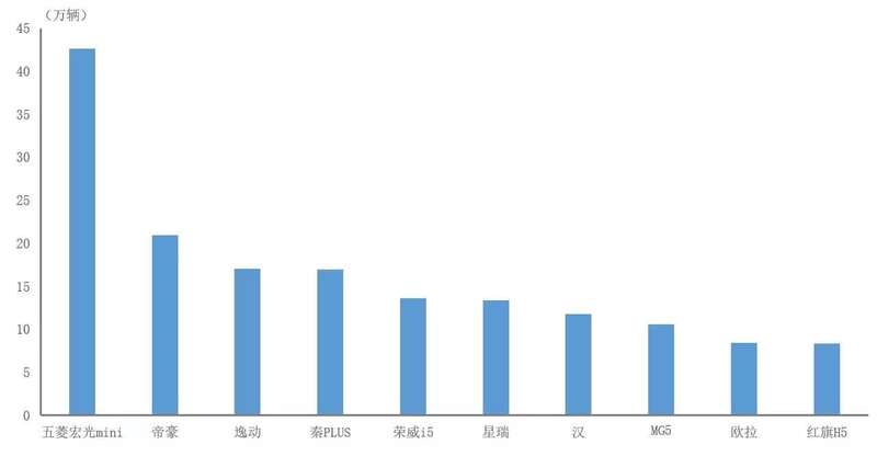 从中国品牌轿车销量榜单来看,五菱宏光mini、帝豪、逸动、秦PLUS、荣威i5、星瑞、汉、MG5、欧拉和红旗H5位列前十名。累计销量为163.8万辆,占中国品牌轿车销售总量的52%。与上年相比,整体呈快速增长势头。