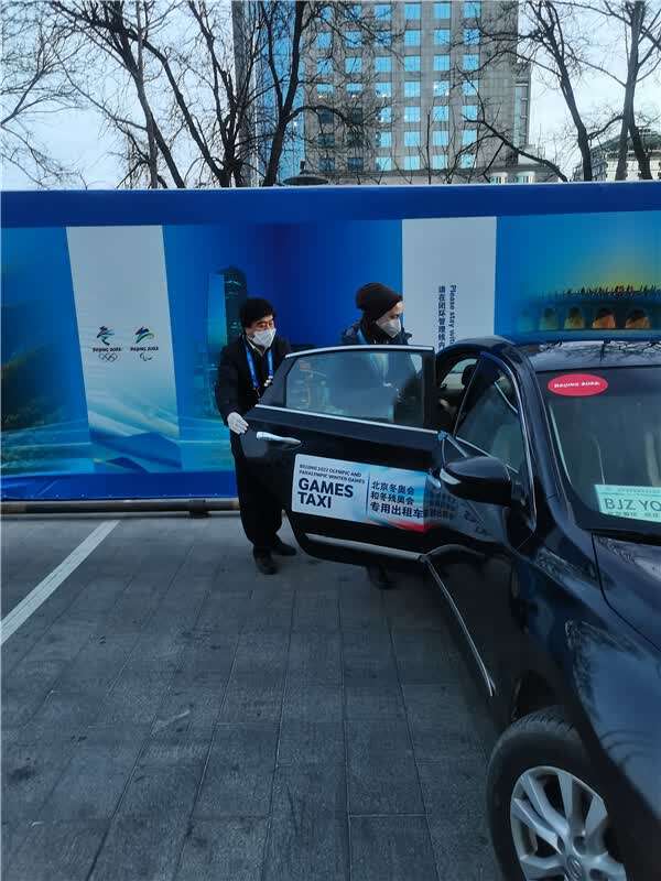 2月8日早晨,天还没有一丝亮光,王智军就已行驶在奥运专用车道上。到达待单停车场后,王智军先对车辆进行一系列清洁工作,刚收拾妥当,手机便提示有即时约车订单,王智军立即赶去上车点接乘客。他热情的与乘客打招呼,帮乘客开门、拿行李,乘客对王智军竖起了大拇指。