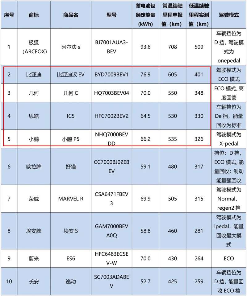 电动车低温续驶里程少200km!涉比亚迪等多品牌