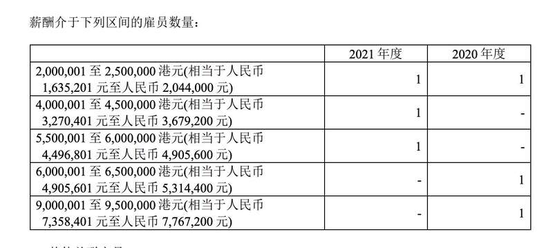 除此之外,长城年薪超百万的高管还有3位,其中副董事长赵国庆年薪为300.36万元,副总经理胡树杰141.09万元,董事会秘书徐辉121.76万元。去年,长城部分高管的高薪现象已经消失。长城年报显示,2021年,薪酬介于490万~531万元的雇员从2020年的1个减为0,薪酬介于735万~777万元的雇员也从2020年的1个减为0。而薪酬介于327万~368万元区间以及440万~491万元区间的雇员分别增加了1个。