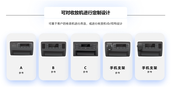 “可定制”是智能收放机方案的典型特征,除语音技能、语音音色、语音交互、内容资源、云端场景化运营等软件层面可定制,“智能收放机” 的ID、颜色、工艺等硬件配置也可根据不同车型进行定制和匹配,满足不同车型的个性化特征需求。思必驰在针对车载前装市场的软硬一体化综合解决方案中,除智能收放机外,亦可打造智能车机、HUD等多种形态车载终端硬件。