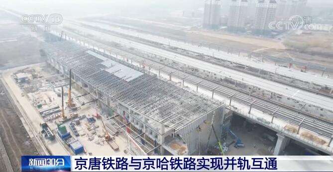 央视网消息:推进京津冀交通一体化标志性工程之一的京唐铁路正在加紧建设。今天(4月25日),随着京唐铁路北京段高速道岔的接入施工完成,京唐铁路与京哈铁路成功实现接轨互通,为京唐铁路开通奠定基础。