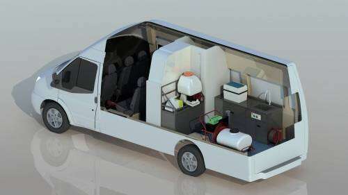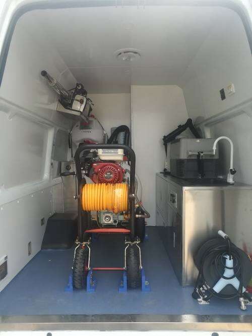 江铃福特全顺防疫消毒车设备放置区和洗消间实景