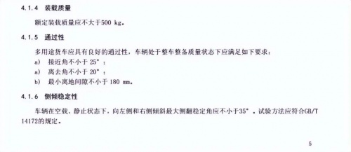 《多用途货车通用技术条件》是中国第一部针对皮卡制定的健全、规范、科学的技术标准,对皮卡车型的各项参数数据作出了准确、全面的定义,在技术层面明确皮卡以“多用途货车”的身份独立存在,同时规定了皮卡的尺寸、载重、座椅间距、拖拽标定等技术标准,对皮卡在安全、节能、环保、舒适性等方面做出规范和要求,更强调皮卡的乘用化和多用途属性。