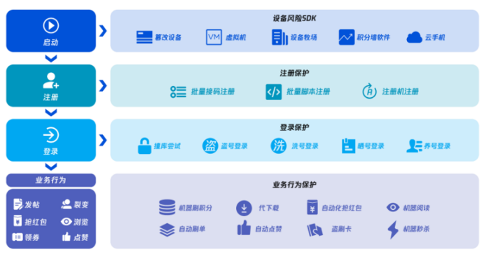 对于营销风控中存在的黑产风险,腾讯可为车企提供全路径多点防控营销安全方案。同时通过专属的安全风控模型和AI关联算法,快速识别和拦截恶意请求,从而精准打击羊毛党。还可根据风险评估,自行定义对应的处理机制,确保真实用户获得更多权益,大幅提升主机厂回收数据的真实性、运营的有效性并形成完整的营销闭环。