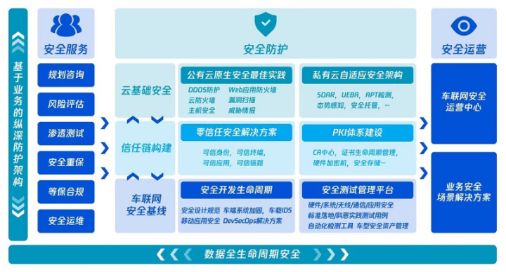 在汽车向智能化、网联化深入发展的阶段,需要重新定义汽车安全标准,构建从云端、车端、移动端全面的网络安全防护体系。腾讯推出一体化汽车安全防护解决方案,以基础安全为支撑,全面保证车联网安全、数据安全和业务安全,为车企提供适合各个环节的安全解决方案,共筑云上安全防线。