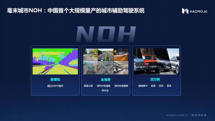 搭载该系统的车辆也将会在近期正式量产落地。未来,毫末城市NOH功能落地的城市将会超过100个,同时搭载乘用车数量将超过100万台。
