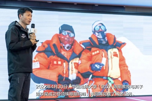 什么是攀登者精神?攀登精神是永不放弃的拼搏精神,是“甘为人梯”的奉献精神,不畏艰险、顽强拼搏、团结协作,勇攀高峰的登山精神就是中华民族奋斗不息的一个缩影。自2012年起,陈刚教授曾三次攀登珠峰,展开科考工作,但因为种种原因均与顶峰失之交臂。2022年4月30日,中国地质大学(武汉)海洋学院教授陈刚与其儿子陈李昊,成功登上海拔8848.86米的珠穆朗玛峰,完成科考任务。