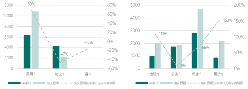 图4 高速充电站2021年国庆假期和平常日充电车辆类型对比