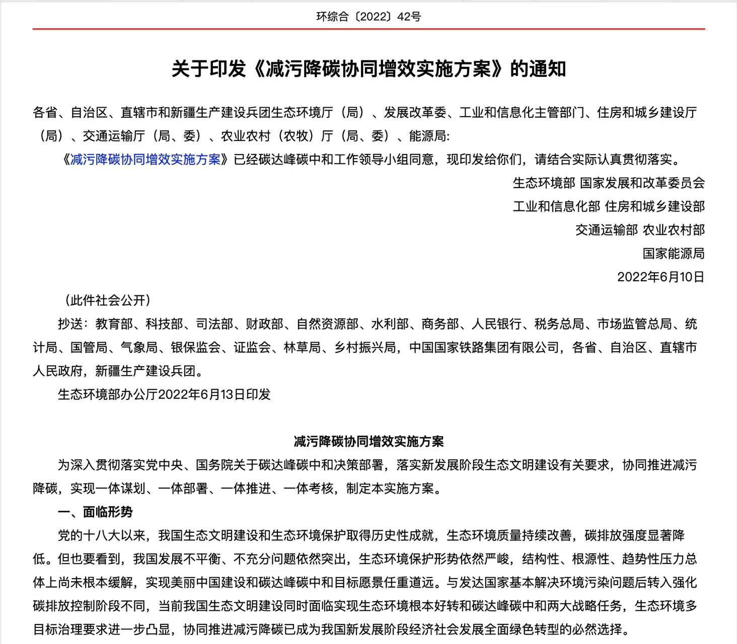 近日,生态环境部、国家发展和改革委员会等七部门联合印发《减污降碳协同增效实施方案》(以下简称《方案》)。