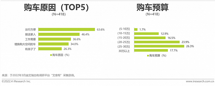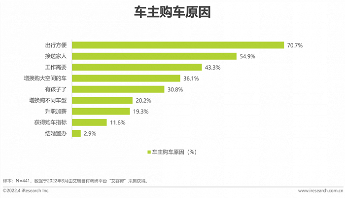 从调研数据看,49.9%车主是第一次购车;70.7%车主购车是为了出行方便,54.9%车主购车是为了接送家人;48.7%购车价格集中在15-25万。