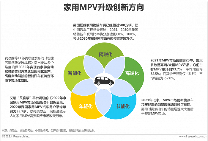 家用MPV行业发展现状:经历初期爆发、中期调整,国内MPV销量将迎来稳定发展,而疫情也并未显著延缓家用MPV行业发展的脚步。现阶段家用MPV产品仍有可改善之处,目前正朝着智能化、网联化、高端化、节能化、年轻化的方向改进升级。