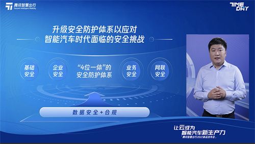 腾讯智慧出行副总裁李博表示,“在汽车智能化的时代,我们需要重新定义汽车安全标准,构建从云端、车端、移动端全面、立体式的安全防护体系。”