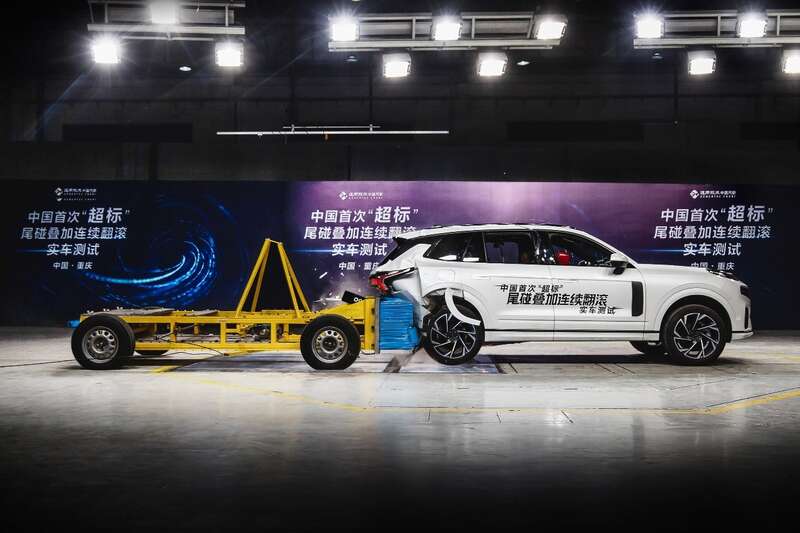 领克09成功完成中国首次“超标”尾碰叠加连续翻滚实车测试