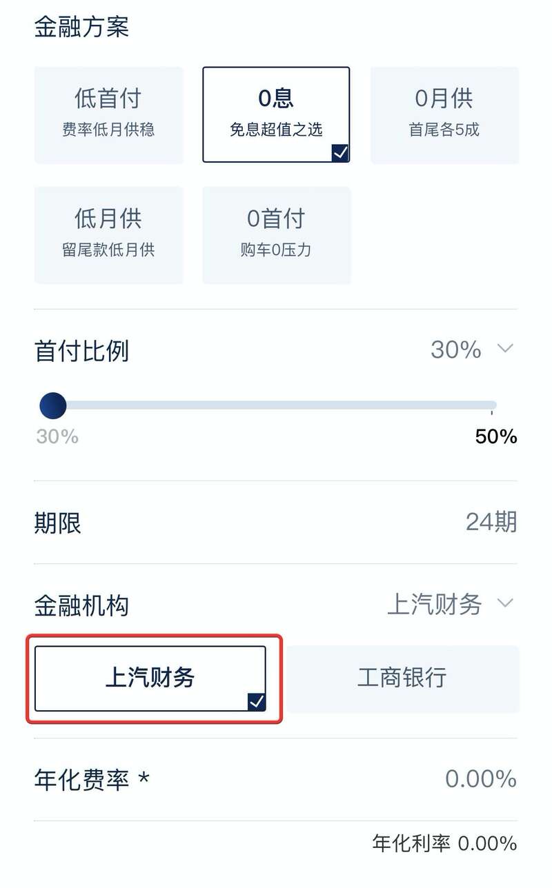 提供金融服务的有上汽财务和工商银行 图源飞凡汽车app
