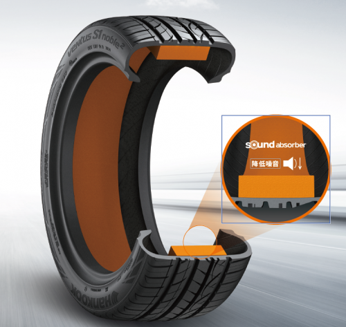 韩泰推出的轮胎专利降噪技术——Sound Absorber低噪海绵技术,通过高科技材料的创新使用,能够有效降低轮胎噪音。韩泰轮胎很早就发现,胎体内空腔的共振是产生噪音的重要来源,在行使过程中,轮胎内的空气受到挤压而产生振动,进而形成胎腔共振噪音,这是一种令人不悦的“嗡嗡”声。