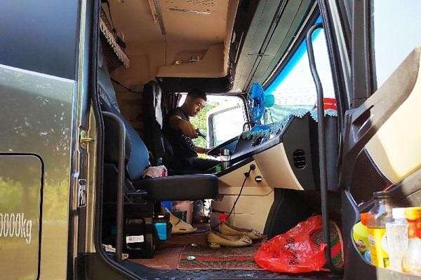“是四点悬浮式的驾驶室,经过坑洼路面时没有颠簸感,避震效果特别好。座椅也是气囊减震的座椅,可调节,对司机的颈椎和腰椎能起到很好的保护,长时间驾驶,不会觉得特别疲劳。”