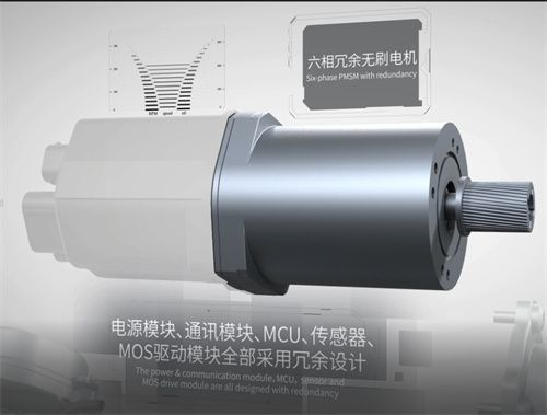 该系统采用6相永磁同步电机作为执行机构,电源模块、通讯模块、MCU、传感器、MOS驱动模块全部采用冗余设计。