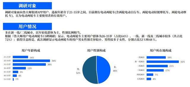 那么我们为什么要评测一款偏向女性需求的车型呢?在鲁大师发布的2021年电动两轮车行业调研报告中,我们发现在外观方面,越来越多的女性,还有Z世代年轻人逐渐成为电动两轮车的主要消费者,并且在鲁大师用户电动两轮车口碑调研中,电动两轮车的主要用户群体集中在26~35岁,其中女性占比更是达到48%。